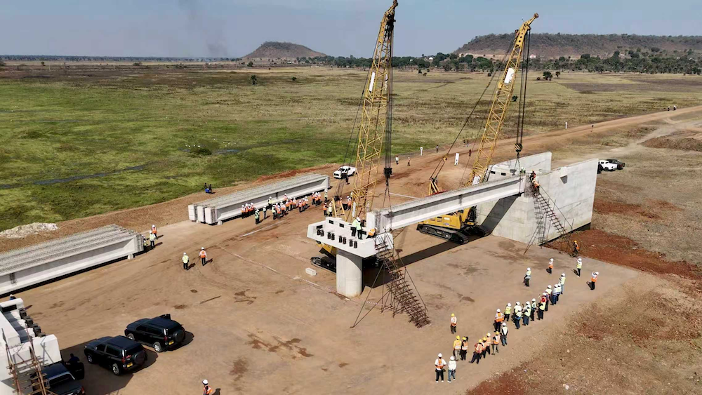 坦桑尼亞標軌六標項目馬拉加西加河橋首片預制梁順利架設